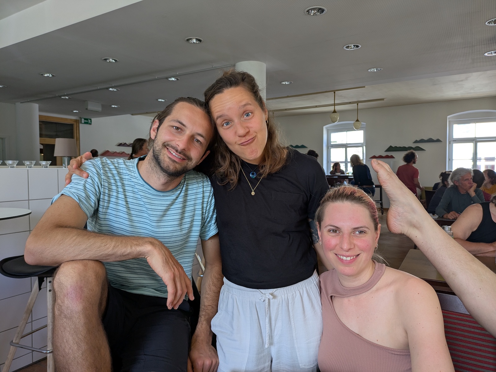 Nepo, Dana, Nathalie, and a curious foot (contact improv weekend in Innsbruck)