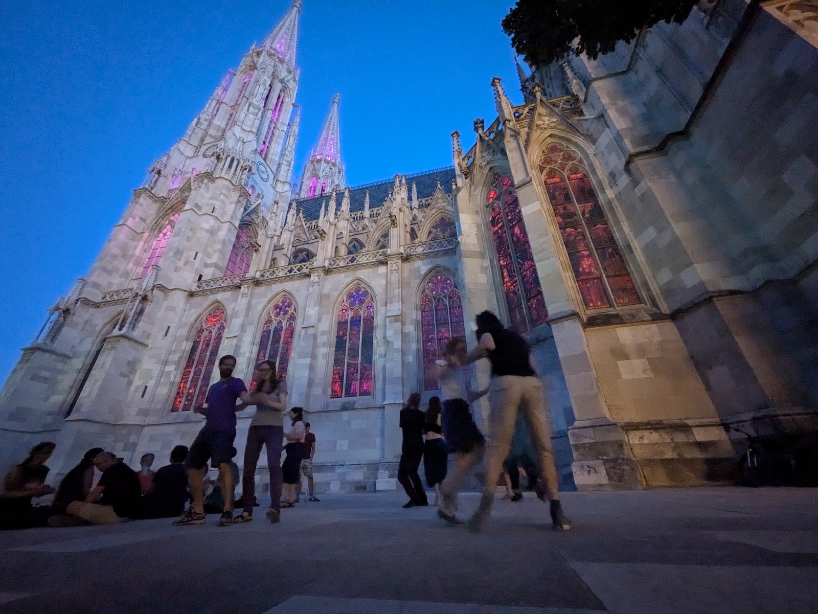 dusk dancing outside Votivkirche in Vienna