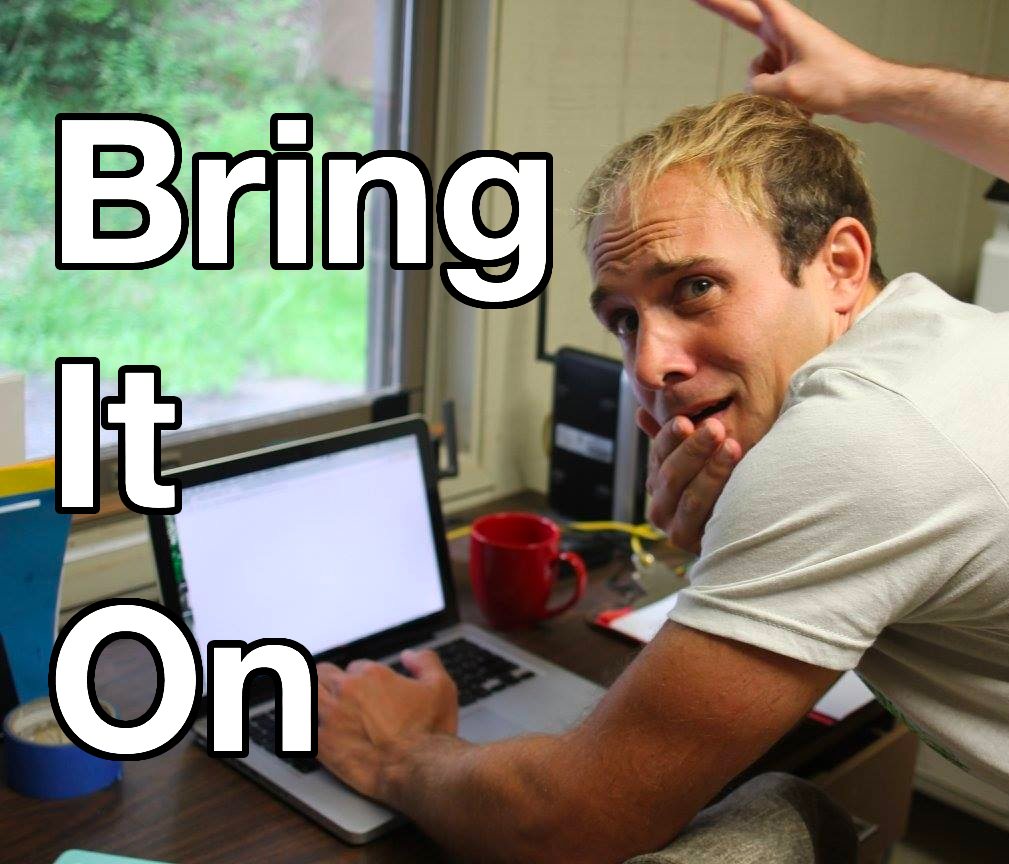 Use this form to challenge me to defend one of my ideas, do something weird/entertaining/vulnerable, or who-knows-what.